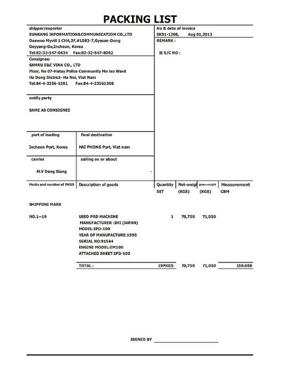 Đúng như tên gọi của nó, packing list - phiếu đóng gói hàng hóa sẽ giúp cho bạn hiểu được cách thức đóng gói, từ đó tính toán các số liệu, hình thức vận chuyển, bốc dỡ hàng: